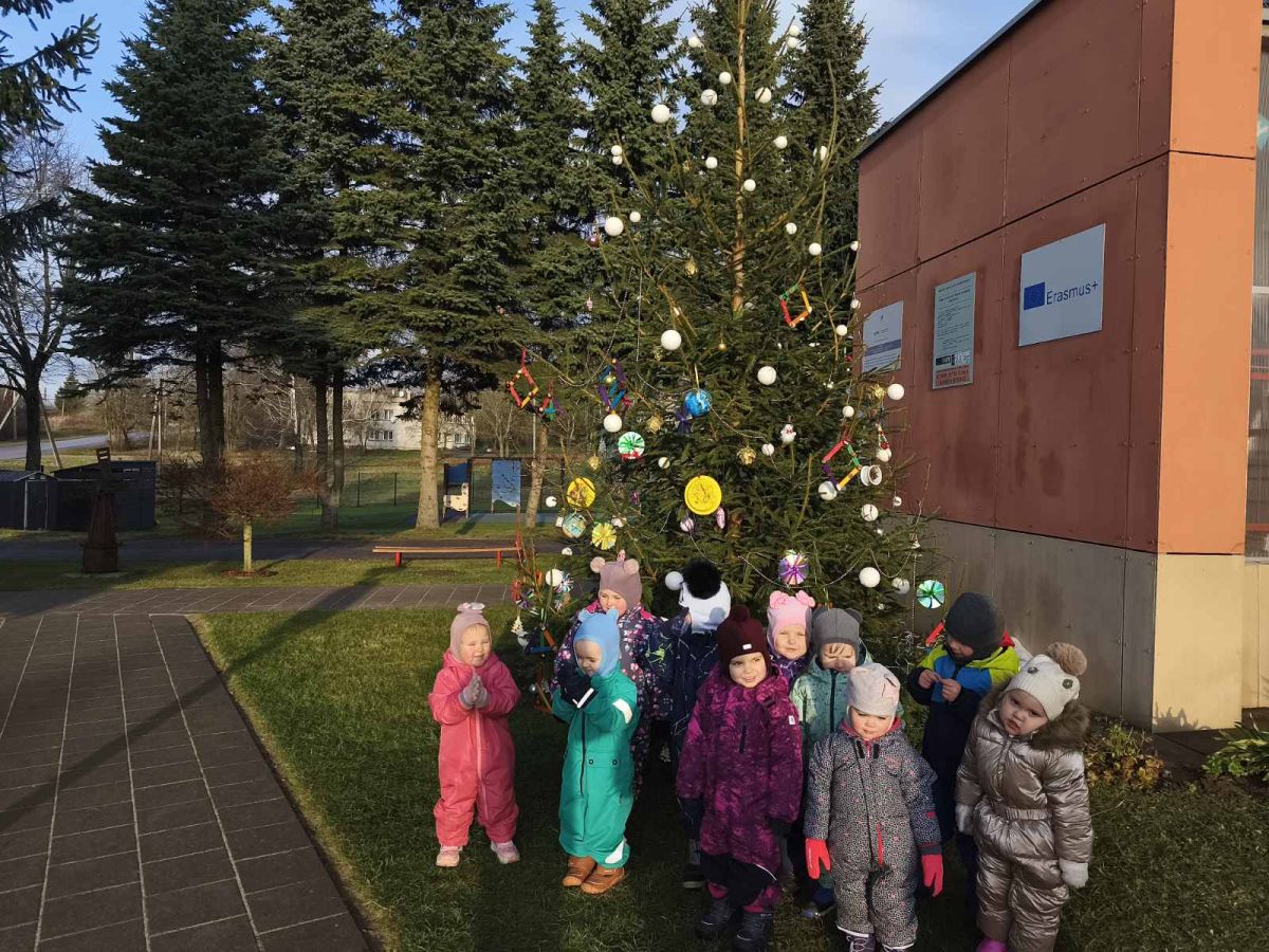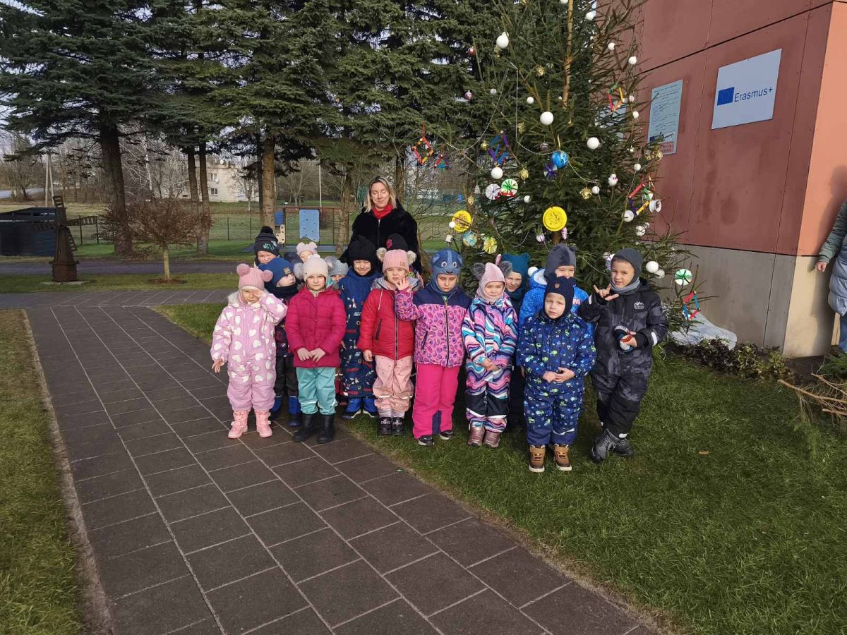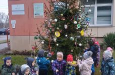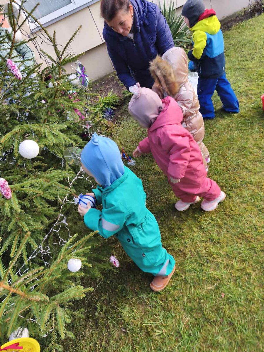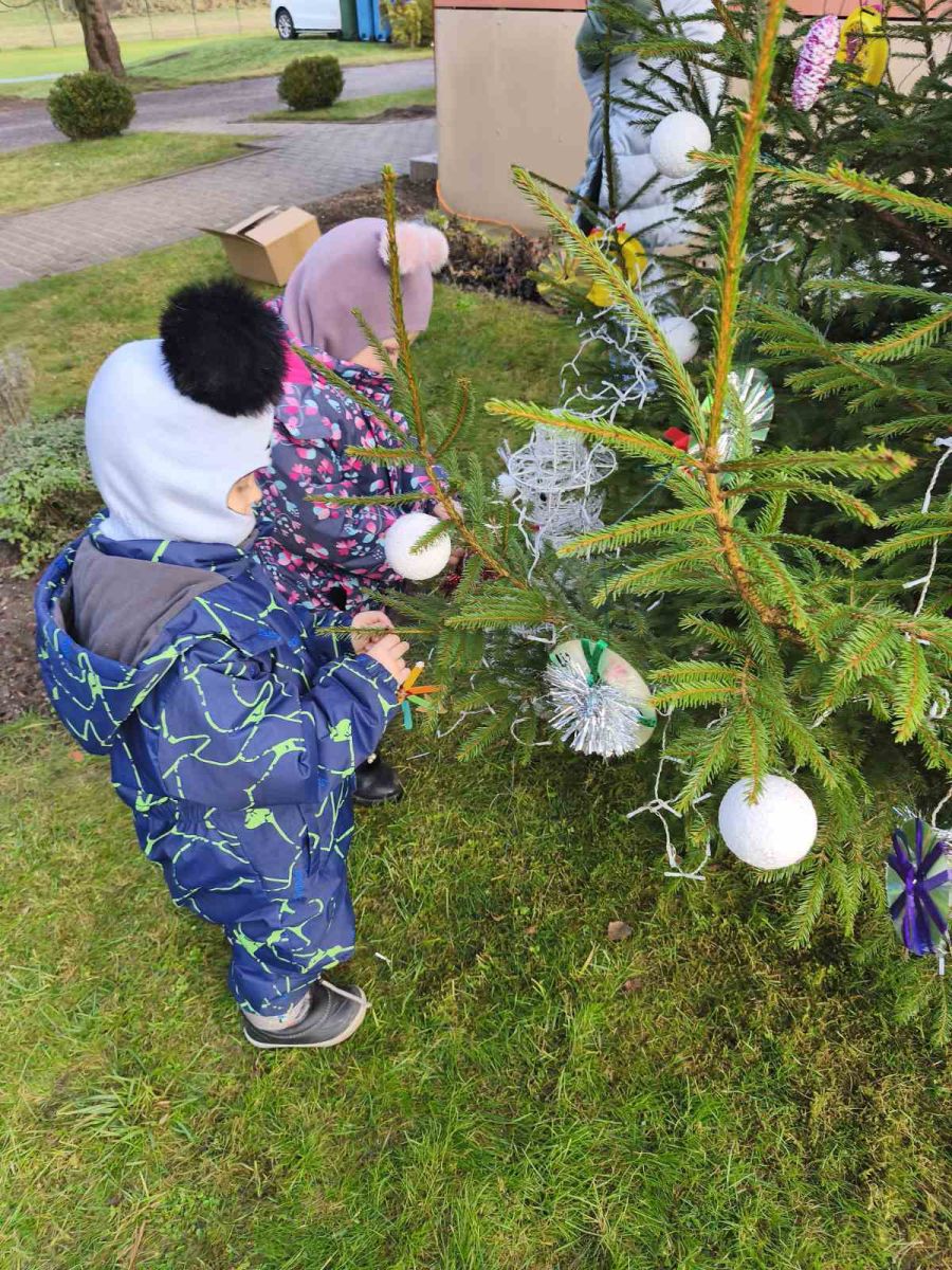 Początek grudnia wprowadził do przestrzeni żłobka-przedszkola magiczny i przytulny, świąteczny nastrój. Głównym symbolem tego nastroju stała się zielona choinka, która zawitała na plac żłobka-przedszkola. Podopieczni z wielkim entuzjazmem i starannością przystąpili do dekorowania świątecznego drzewka. Małe rączki ostrożnie wieszały błyszczące bombki, z radością owijały choinkę girlandami i z dumą wieszały własnoręcznie wykonane ozdoby. Każde dziecko chciało przyczynić się do wspólnego piękna świątecznego drzewka, dlatego choinka natychmiast rozświetliła się jaskrawymi kolorami i bożonarodzeniowym blaskiem.
