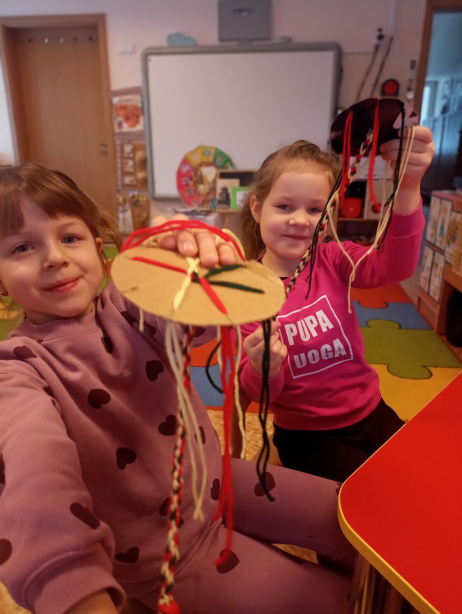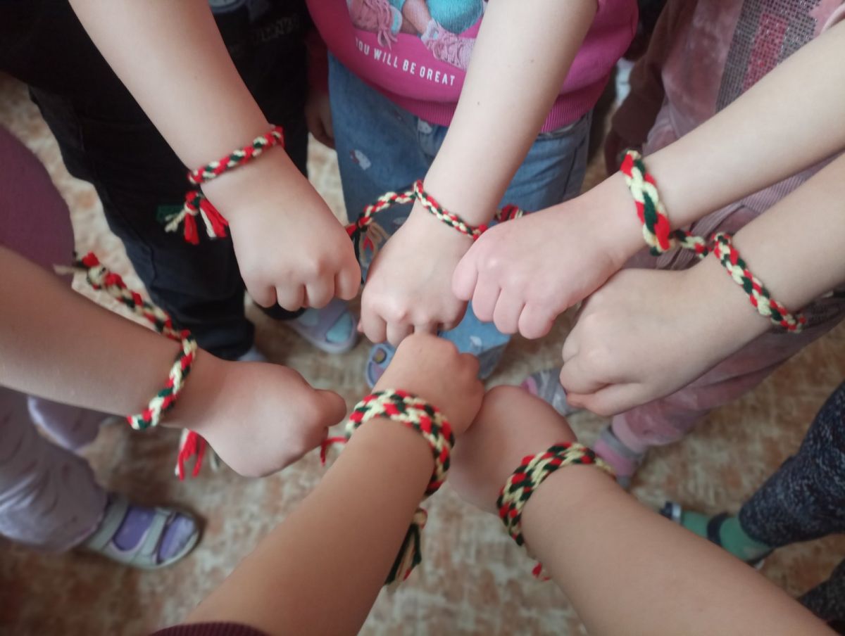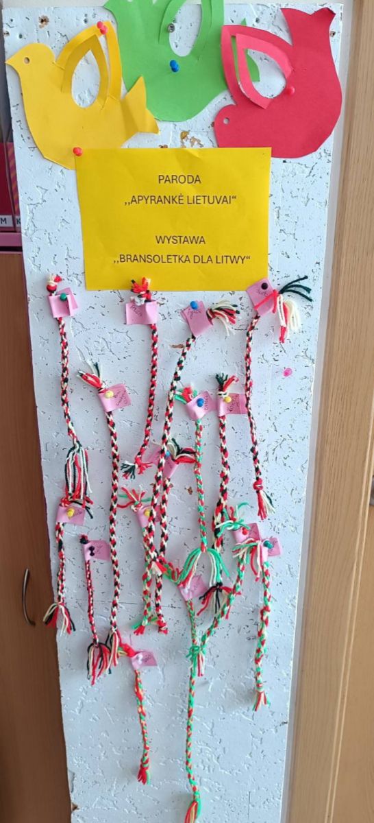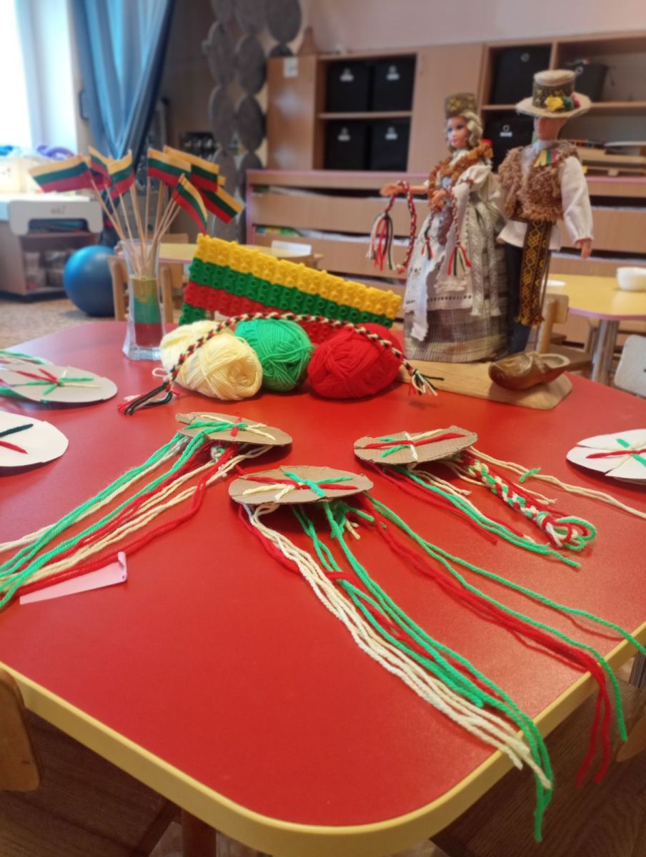 Dzieci z grupy „Krasnoludki” ze Żłobka - Przedszkola w Mejszagole wzięły udział w wirtualnej twórczej wystawie „Apyrankė Lietuvai”, organizowanej przez Gimnazjum „Verdenė” w Podbrzeziu. Z okazji Święta Niepodległości Litwy mali patrioci stworzyli bransoletki w kolorach narodowych barw Litwy, wykorzystując technikę Kumihimo. Poprzez przeplatanie żółtych, zielonych i czerwonych nici dzieci utrwalały kolory flagi swojej Ojczyzny. Ta kreatywna praca to dla dzieci nauka cierpliwości, wytrwałości oraz satysfakcji z osiągniętego rezultatu, a także piękny sposób na poznanie symboli narodowych ojczystego kraju.