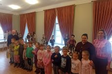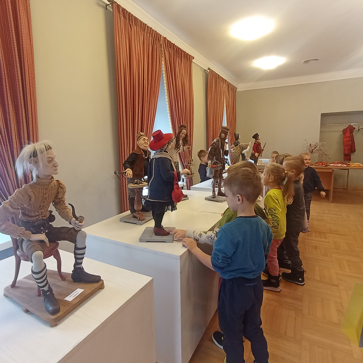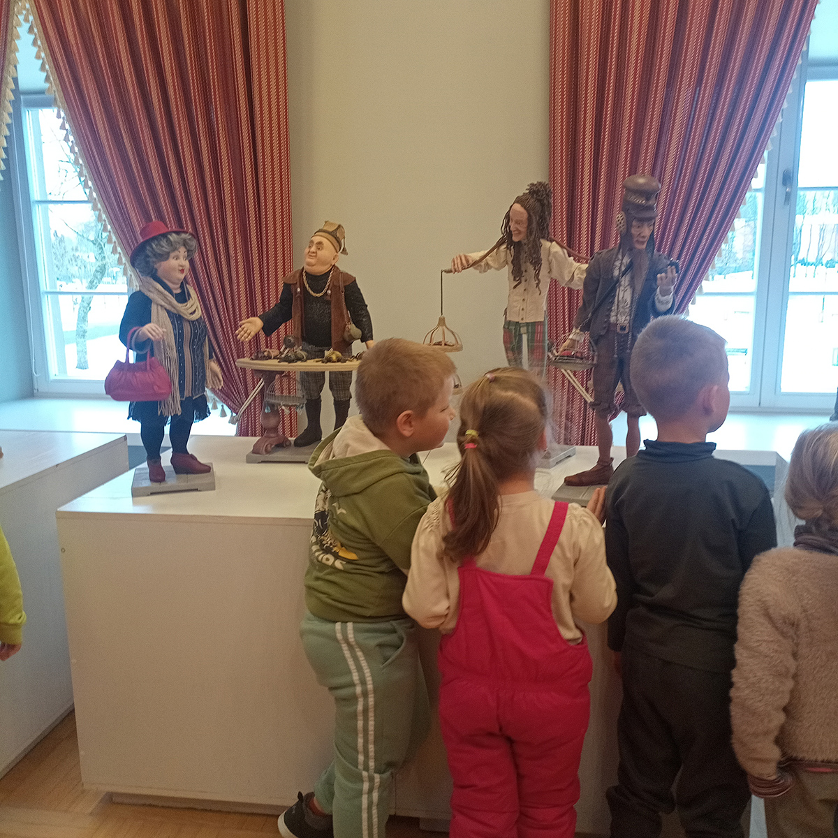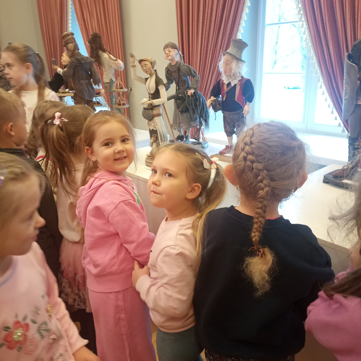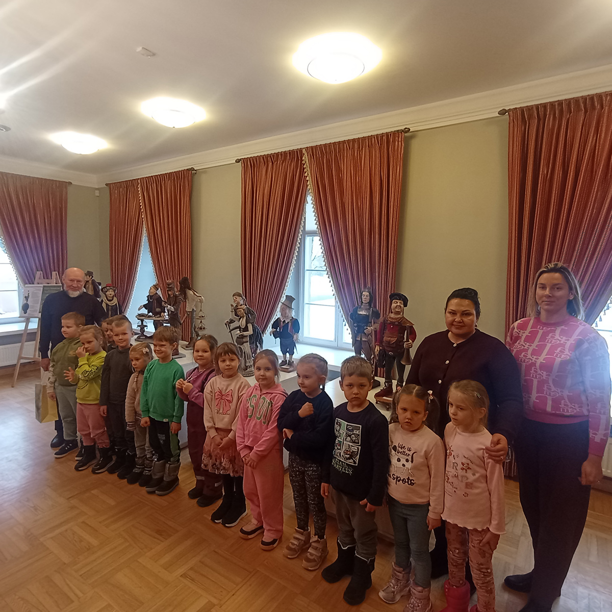 Starsze dzieci z grup „Krasnoludki“ i „Motylki“ wybrały się na wycieczkę do Dworu Houwaltów w Mejszagole. Tam spotkały prawdziwego artystę – Olega Ribikauskasa. Z wielkim zainteresowaniem dzieci obejrzały jego wystawę „Drewniane postacie“.