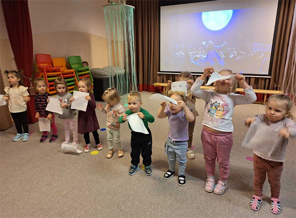 Dzisiaj dzieciaki podczas zajęć muzycznych mogły zapoznać się z budową głosu oraz wypróbować różnych technik oddechowych.