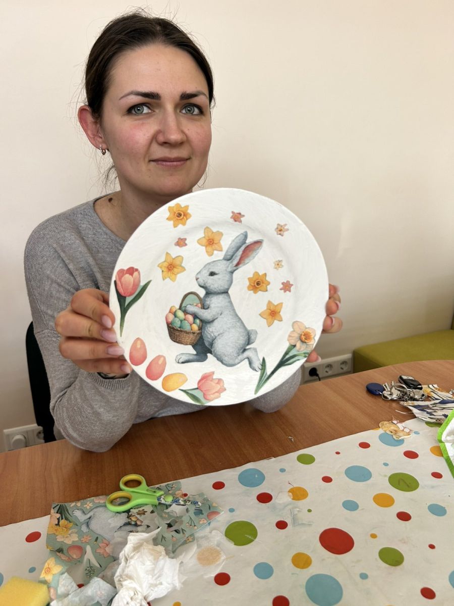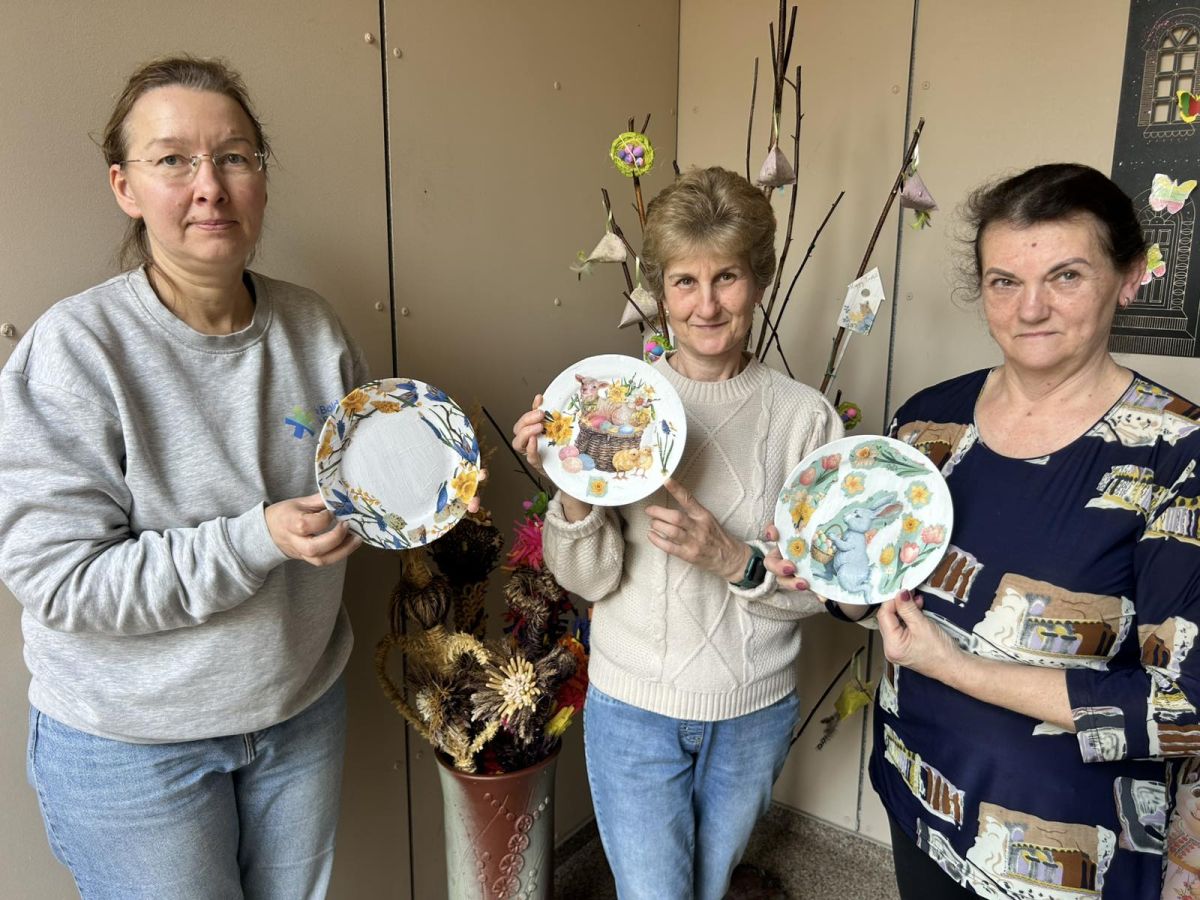 Dirbtuvių metu dalyviai susipažino su dekupažo technika ir turėjo galimybę savarankiškai dekoruoti velykines lėkštes. Kūrybinis procesas suteikė daug teigiamų emocijų, įkvėpimo ir bendrystės jausmo. Visi dalyviai džiaugėsi galėdami išbandyti naują veiklą, dalintis idėjomis bei kurti jaukią, šventinę nuotaiką.