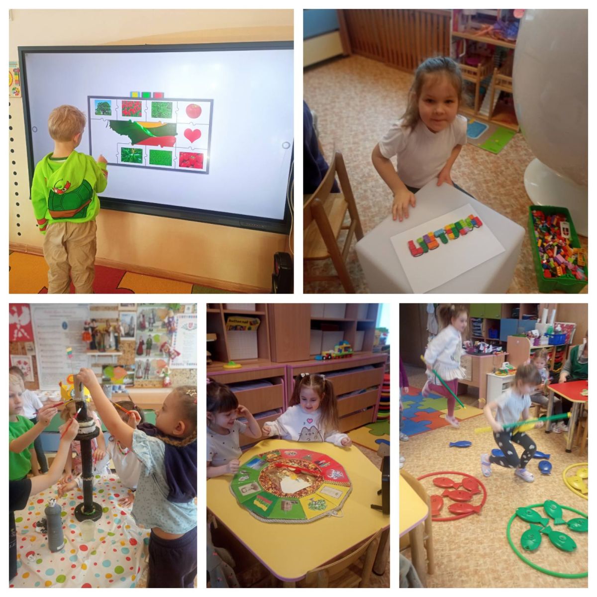 „Žaliųjų žodžių laboratorijoje” vaikai žaidimų ir kūrybinių užduočių metu ieškojo gražių lietuviškų žodžių, mokėsi juos tarti ir suprasti jų reikšmę. „Raidžių dirbtuvėse“ vaikai susipažino su abėcėlės raidėmis, bandė jas atpažinti, susieti su girdimais garsais bei savo vardais. Tai padėjo lavinti smulkiąją motoriką ir domėjimąsi rašytine kalba. Per užsiėmimą „Gražiausi lietuviški žodžiai“ vaikai prisiminė skambius ir prasmingus lietuvių kalbos žodžius, tokius kaip: mama, ačiū, prašau, šeima, jūra, draugystė... Muzikinės veiklos „Dainuoju, muzikuoju Lietuvai“ metu vaikai dainavo lietuviškas daineles, klausėsi muzikos ir išreiškė džiaugsmą judesiu bei ritmu. Kūrybiškumą vaikai atskleidė per kūrybinę dieną „Mano gražiausias lietuviškas žodis“. Kiekvienas vaikas pasirinko patinkantį žodį ir jį kūrybiškai pavaizdavo – piešė, dekoravo ar kūrė koliažą. Smagios ir įtraukiančios buvo „Mįslių dirbtuvės“, kuriose vaikai spėliojo lietuviškas mįsles, bandė patys sugalvoti atsakymus ir džiaugėsi atradimo džiaugsmu. Taip pat vyko lietuviški rateliai ir žaidimai, kurie skatino judėjimą, bendradarbiavimą ir gerą nuotaiką. Savaitės metu vaikai tapo ir „Lietuviškų žodžių detektyvais“ – ieškojo lietuviškų žodžių aplinkoje, paveikslėliuose ir knygelėse, mokėsi juos atpažinti bei tarti. Savaitę vainikavo „Pasakų diena“, kai vaikai iš namų atsinešė savo mėgstamas knygeles. Jie klausėsi skaitomų pasakų, aptarė veikėjus ir dalijosi savo įspūdžiais.