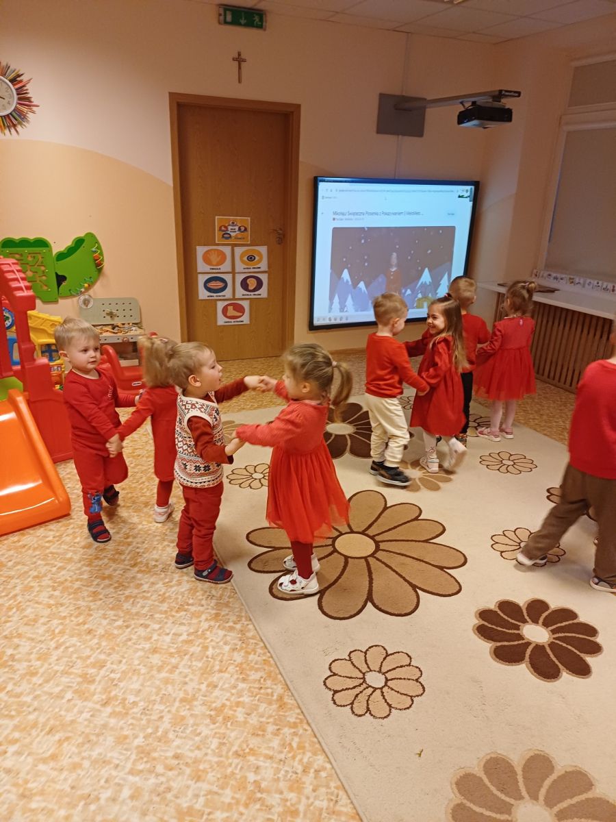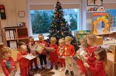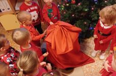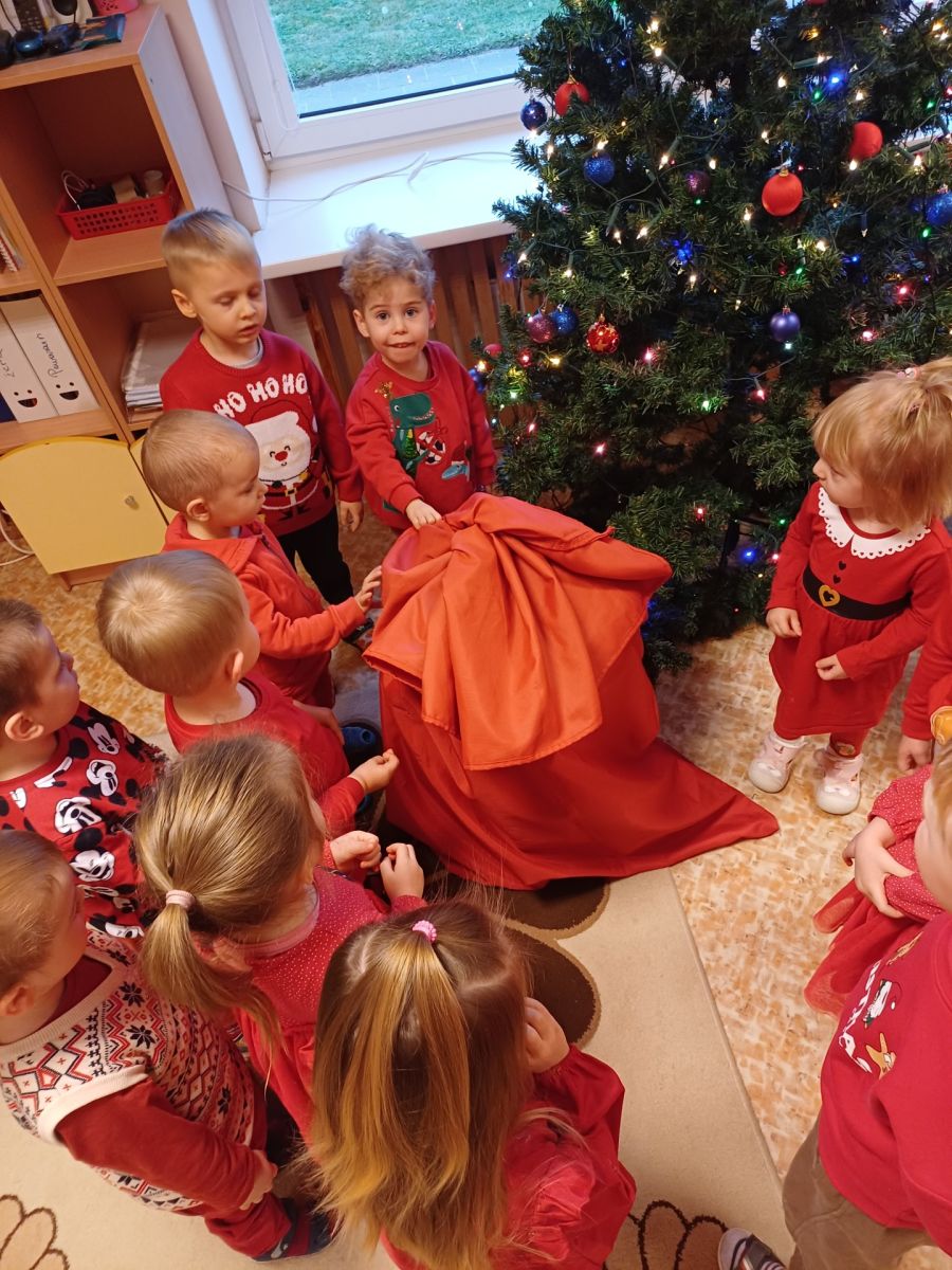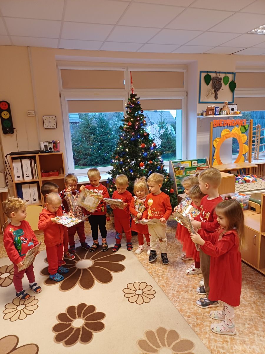 W tym wyjątkowym, grudniowym dniu maluchy, ubrane w czerwone stroje i mikołajkowe czapeczki, z radością uczestniczyły w przygotowanych zajęciach. Dzieci wysłuchały pięknych opowieści o Świętym Mikołaju, a następnie własnoręcznie wykonały ozdoby choinkowe, którymi później udekorowały choinkę, ustawioną na przedszkolnym podwórku. Ku ogromnej radości wszystkich przedszkolaków do grupy „Biedronki” nareszcie zawitał Święty Mikołaj! Każde dziecko otrzymało od niego słodki upominek, a uśmiechy nie schodziły z małych twarzyczek. Po poobiednim odpoczynku na dzieci czekała kolejna niespodzianka. Obok choinki znalazł się duży worek prezentów, które, jak się okazało, zostawił Święty Mikołaj, dodając w tym dniu jeszcze więcej tajemniczości.