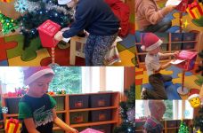 W Mikołajkowy poranek naszą grupę odwiedzili uczniowie Gimnazjum ks. Józefa Obrembskiego w Mejszagole wraz z przedstawicielami Samorządu Uczniowskiego. Dzieci z radością powitały gości, a wspólne zabawy i rozmowy wprowadziły wszystkich w świąteczny nastrój. Po wizycie gości „Krasnoludki” z zapałem dekorowały choinkę, pisały listy do Mikołaja oraz pozowały do świątecznej fotosesji. Ogromną niespodzianką były również prezenty przygotowane przez rodziców, za które serdecznie dziękujemy!