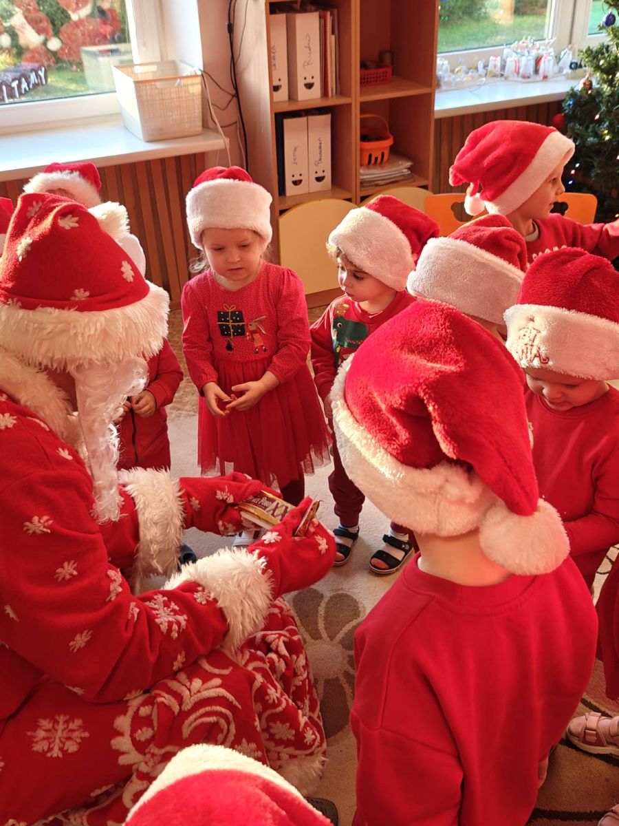 Dzisiejszy dzień, 5 grudnia, był magiczny, ponieważ zgodnie z tradycją, Mikołaj, otoczony asystentami, złożył wizytę naszym najmłodszym. Dzieci z bijącymi sercami powitały gościa. W zamian za wierszyki i piosenki, każde dziecko otrzymało słodycze! Uśmiechy i iskierki radości na buziach przedszkolaków były najlepszym dowodem na to, że Mikołajki to jeden z najbardziej uwielbianych dni w roku.