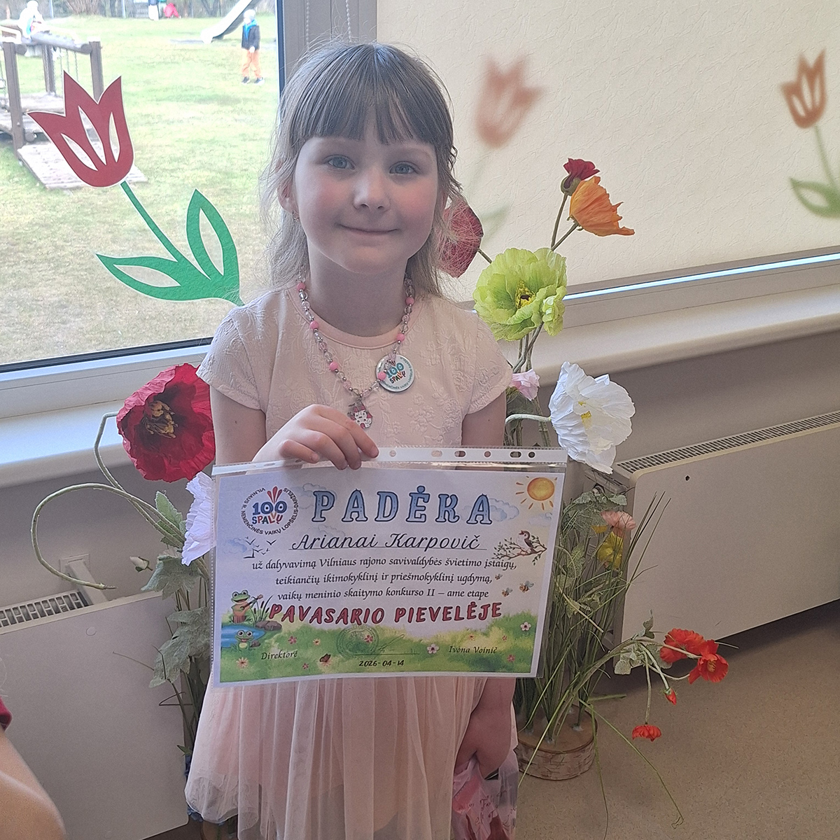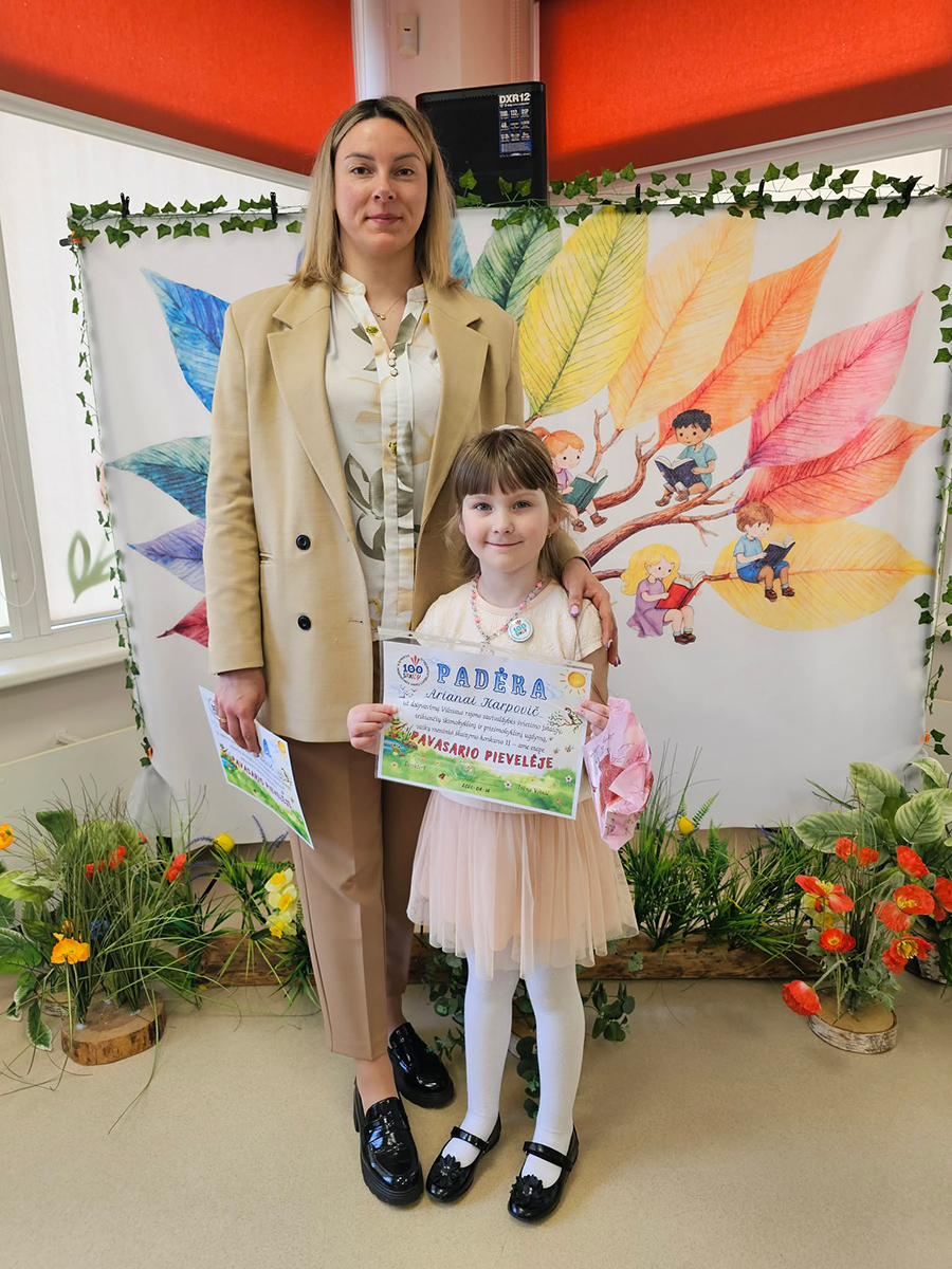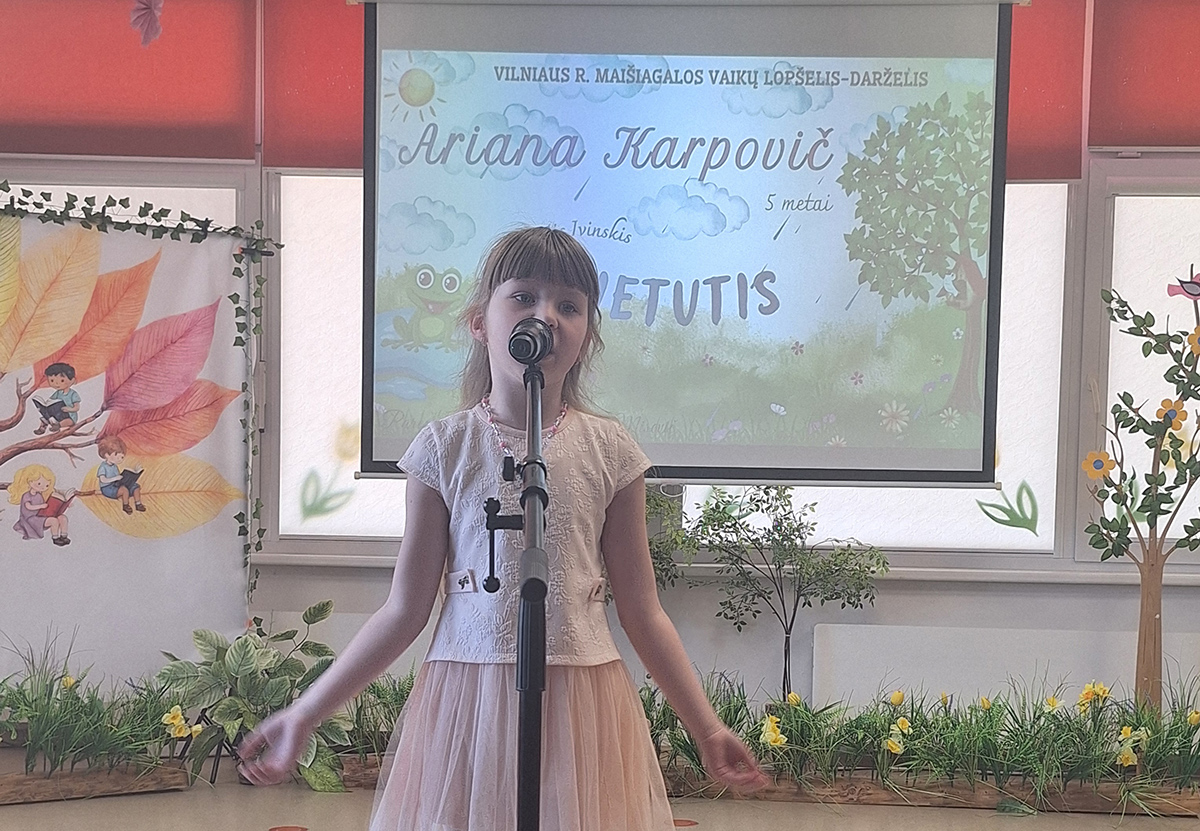Didžiuojamės mūsų darželio „Drugelių“ grupės ugdytine Ariana Karpovič, kuri garbingai atstovavo savo įstaigai ir buvo įvertinta pagyrimo raštu. Ariana konkurse deklamavo Kęstučio Ivinskio eilėraštį „Lietutis“.