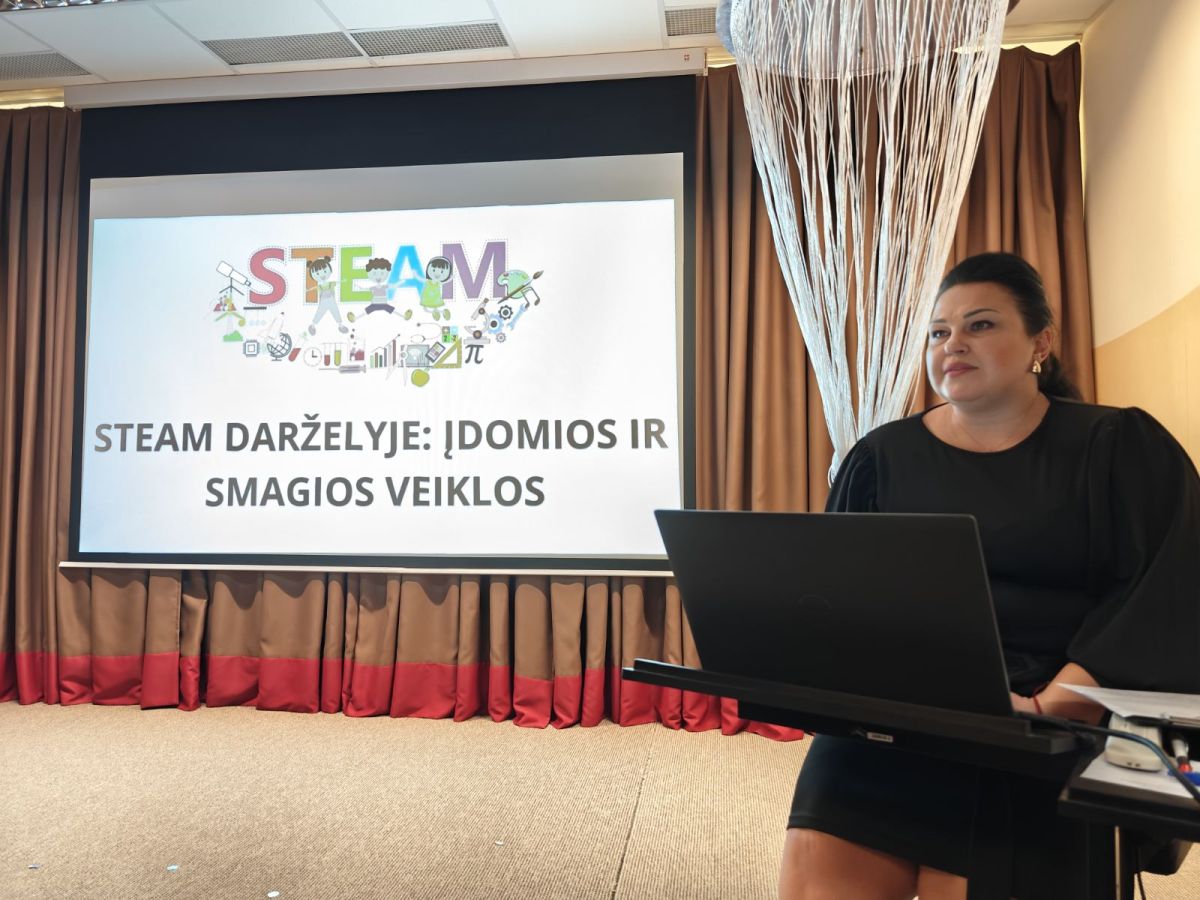 - „STEAM darželyje – įdomios ir smagios veiklos“ – pranešimą skaitė lopšelio-darželio ikimokyklinio ugdymo mokytoja metodininkė Gražina Švaikovskaja.