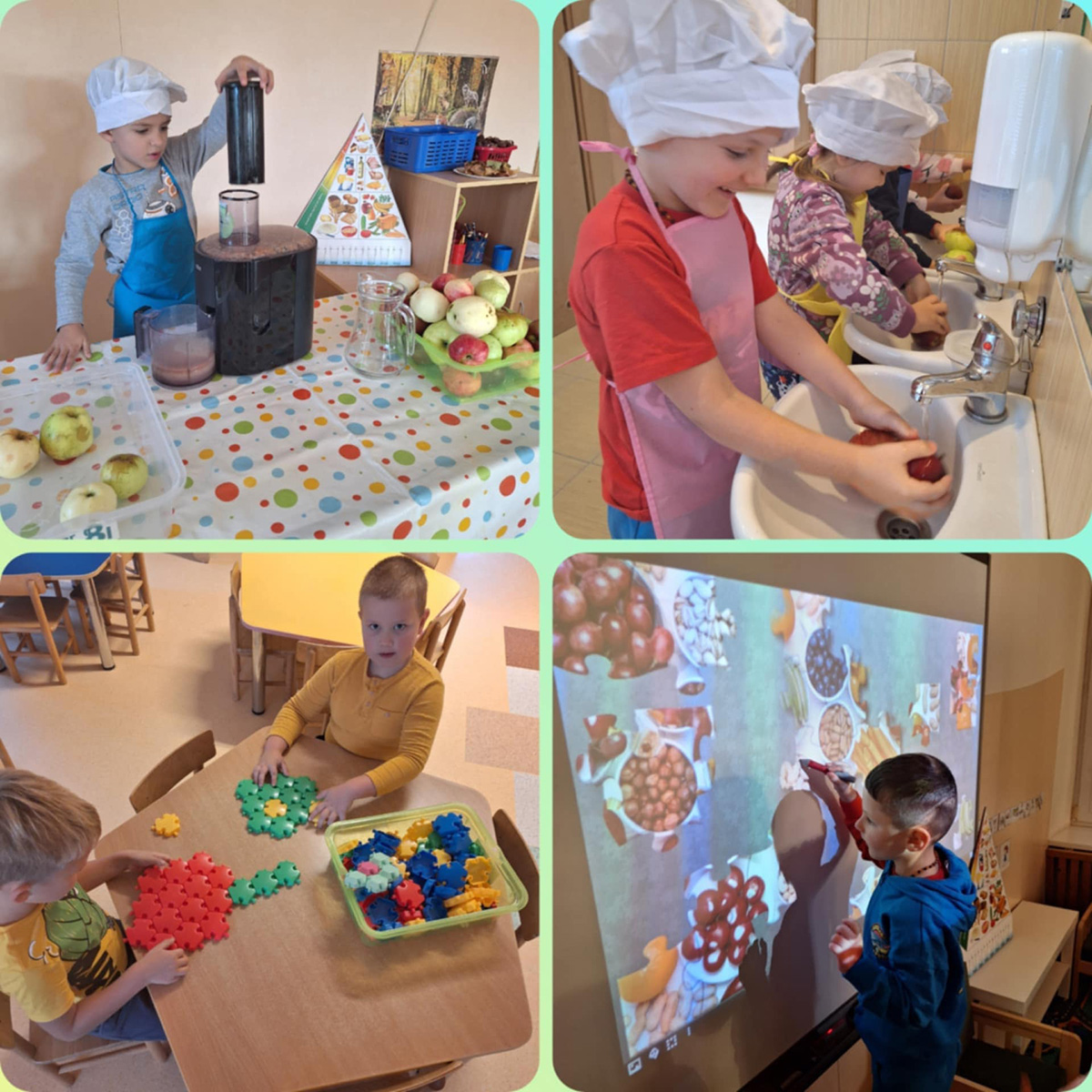 Ruošdamiesi sulčių spaudimo procesui, vaikai prisiminė, kokią aprangą reikia dėvėti, kaip tinkamai paruošti vaisius, kokių įrankių prireiks. Žinoma, buvo aptartas ir saugus elgesys su prietaisais bei gaminimo įrankiais.