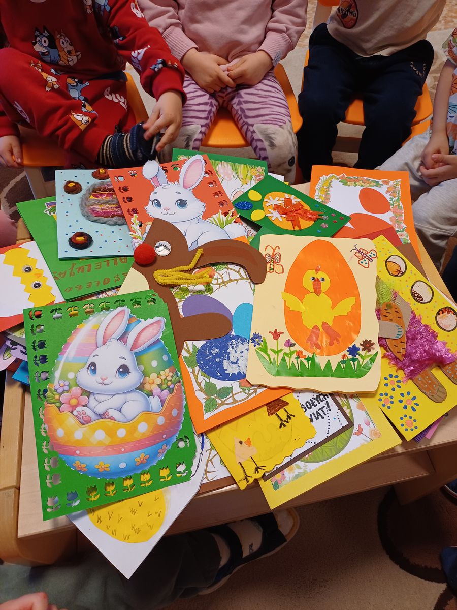 W ramach współpracy między naszym Żłobkiem–przedszkolem a Żłobkiem- przedszkolem w Glinciszkach odbyła się wymiana kartek wielkanocnych, wykonanych własnoręcznie przez dzieci. Dzieci z grupy „Biedronki” naszego przedszkola z wielkim zaangażowaniem przygotowały swoje świąteczne prace, wkładając w nie dużo serca, radości i kreatywności. Otrzymane od rówieśników z grupy „Motylki” ze Żłobka - przedszkola w Glinciszkach kartki sprawiły przedszkolakom ogromną radość i były pięknym dowodem przyjaźni oraz wspólnego świętowania. Cieszymy się niezmiernie z tej współpracy i mamy nadzieję, że przyniesie ona wiele pozytywnych doświadczeń oraz stanie się początkiem kolejnych wspólnych inicjatyw.