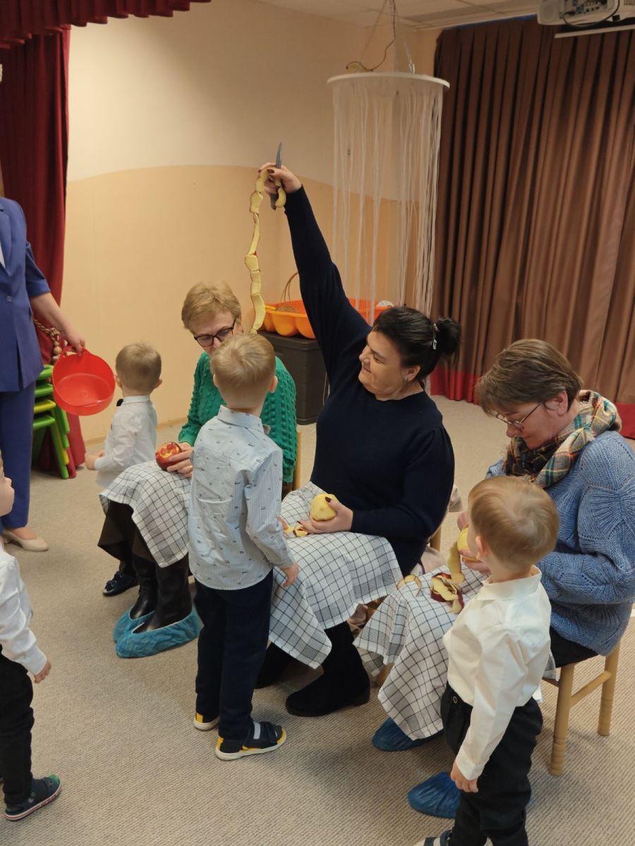 Po części artystycznej przyszedł czas na pełne dobrego humoru i radości zawody dla Babć i Dziadków. Babcie z wielkim zaangażowaniem obierały jabłka, starając się nie przerwać skórki tak, aby po obieraniu przypominała sprężynkę. Dziadkowie, natomiast, ubijali białko na pianę, a także brali udział w zabawie, polegającej na łowieniu rybek, sprawiając swoim wnuczętom mnóstwo radości. Wszyscy uczestnicy otrzymali wyróżnienia w postaci dyplomów Najwspanialszej Babci i Najwspanialszego Dziadka na świecie.