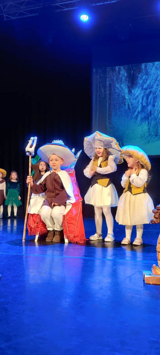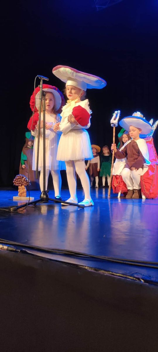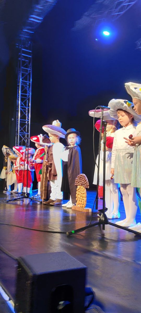 W tym roku na scenie zaistniały wszystkie dzieci z grupy ,,Krasnoludki”, z barwną i pełną humoru inscenizacją wiersza Jana Brzechwy „Grzyby”. Mali aktorzy pięknie odegrali swoje role, zachwycając publiczność i wprowadzając wszystkich w radosny, bajkowy nastrój.